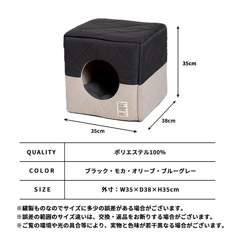 落ち着いたアースカラー✕洗練されたニュアンスカラーで、大人ミリタリーなスタイルに♪寒い外気を防ぎながら内側の暖かさを逃しにくい、サイコロ型のベッドです。オリジナルのミルスペック織ネームを、ベッド全体を引き締めるアクセントに。さりげないミリタリー感で、ユニセックスに使えるのも嬉しいポイント!上部をへこませて中のクッションを上に置けば、スクエア型ベッドに大変身!ワンちゃんの気分や体調によって使い分けることができます。表地には、さらりとした質感が心地よいポリエステル製キルティング生地を採用。汚れてもお手入れしやすいのが嬉しい♪内部のクッションは取り外し可能。携帯用クッションとして車でもお出かけ先にも持ち運べるので、とっても便利♪柔らかく保温性に優れたフリース生地で、ワンちゃんもうっとり快適!落ち着いたミリタリースタイルを提案する「アビエイターシリーズ」で、お出かけもおうち時間もスタイリッシュに。(左から、アビエイターパデッドハーネス、アビエイターキャップ、アビエイターシュラフベッド、アビエイターサイコロベッド)
